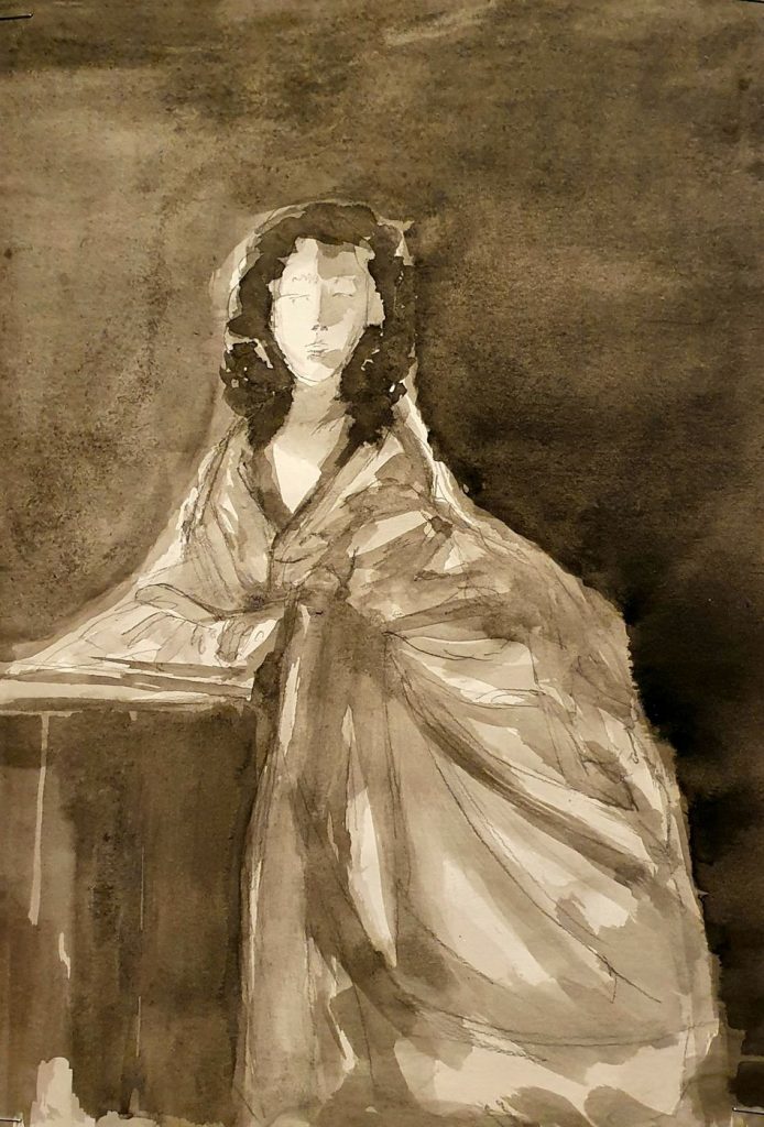 Reproduction de portraits, encre de chine, formats A4, travail de la mi-teinte